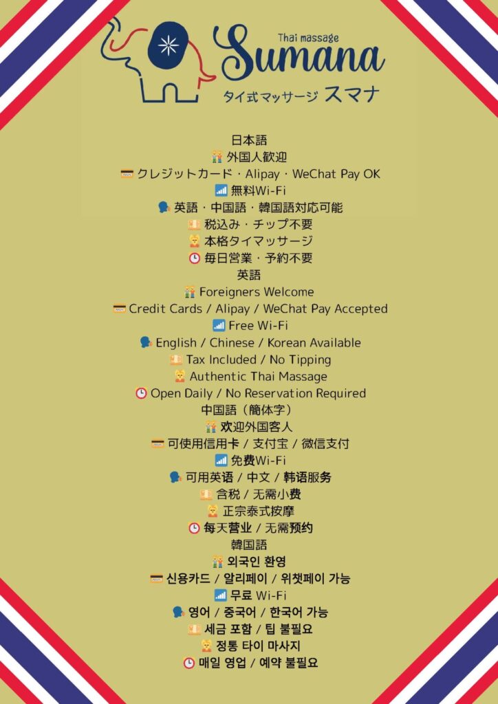 ご希望に合わせた圧や手技で、全身の巡りを整えながら心身をほぐしていきます。途中での力加減の調整も遠慮なくどうぞ。